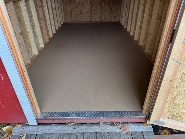 Wonderful like new scarlet red Old Hickory Shed measuring 8 x 16‘, 4 foot single door on end with a metal roof. I have contact information for the transporter that depending on location can hook up...